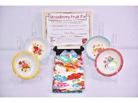Enjoy the taste of fresh strawberries in these 4 homemade pies! Made when you want them between June 1st and June 30th, 2020, these pies will be put into these adorable 5.5" pie dishes for you to enjoy, and the dishes to keep! Also included is a set of matching tea towels. Eat all the pies yourself, or share with some friends!
