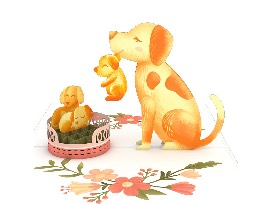 The Dog Family pop-up card is 5 inches wide by 7 inches tall.