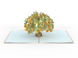 The Orange Blossom Tree pop-up card is 5 inches wide by 7 inches tall.