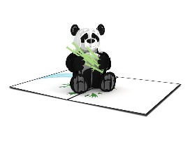 Have you ever tuned in to a zoo Panda cam? A Panda Bear pop-up card, after seeing that, was a must. Since othe Lovepop team has designed several bears, they had a great foundation to start with. Using the original Lovepop bear as their model, they added specific Panda Bear details (they couldn't have a panda bear without bamboo), and another delightful Lovepop creation was born.