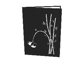 The front of this black pop-up card features a loveable Panda Bear hanging onto the end of a bamboo shoot. Laser-cut details on the bamboo reeds and leaves add a realistic finish to the whimsical illustration. Once opened, a cheerful Panda Bear pops up, holding onto its well-deserved bamboo treat. Bamboo leaf embellishments and a stream of blue water make up the Panda's habitat.
