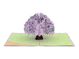 The Jacaranda Tree pop-up card is 5 inches wide by 7 inches tall.