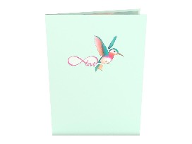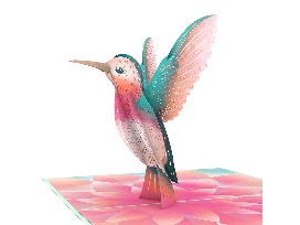 The Lovely Hummingbird pop-up card is 5 inches wide by 7 inches tall.