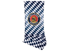 This package contains a 5-liter ceramic Paulaner mug and an 80 cm x 300 cm (approx. 31.5" x 118") Paulaner flag.