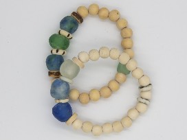 Twine and Twig stack bracelets with globally-sourced beads--blue and green tones.