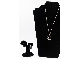 Sterling silver and black onyx heart-shaped necklace and earrings.