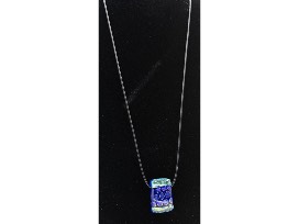 Blue and turquoise dichroic glass pendant with chain.