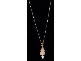 Chain measures 18". Pendant measures 2.375" from top to bottom.