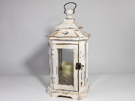 Wooden Cream Lantern & Candle
