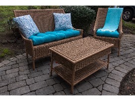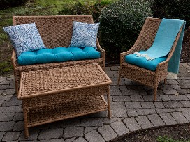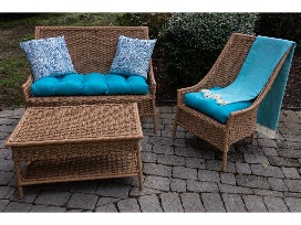 The Seaside Sand Wicker Chat Set combines two beloved styles into one trendy, timeless look. It starts with a powder-coated, rust-resistant iron frame in a modern, angular silhouette, then it's finished with all-weather wicker that's woven by hand. The weather-resistant wicker is significantly sturdier than its natural-fiber counterpart and can be easily cleaned using mild soap and water.