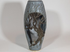 Stunning handcrafted Treepot by Don Walton made in North Carolina. 12" in height. Each Treepot is made individually and go through an extensive processes from forming on a pottery wheel to carving to glazing and firing.