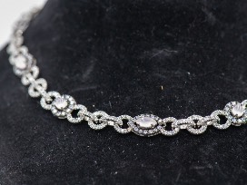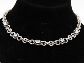 Feel beautiful and look beautiful in this extraordinary necklace from Savvy Cie. The Riveria necklace is 16" long with full-cut AAA-grade hand-set cubic zirconia and lab-created rose quartz set in sterling silver. It is dazzling in all lighting and will surely catch the eye!