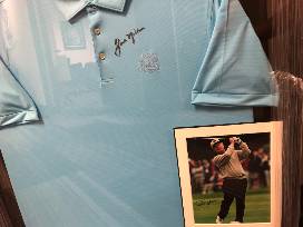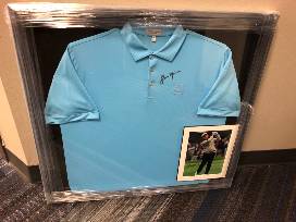 This is a signed polo by Jack Nicklaus from the 2019 Sanford International Golf Tournament in a custom frame.