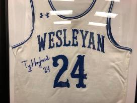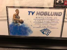 A signed, game-worn, Ty Hoglund jersey. 24 x 36 inch frame.