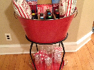 1st Grade - room 2 - Ms Patricia Weiland - Sodalicious Beverage Tub. Pier 1 beverage tub, tray and stand filled with pitcher, glasses, sancks and unique sodas personalized with the kid's pictures from Cost Plus World Market.