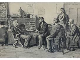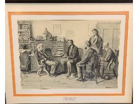 Bring home an illustration from famed American illustrator A.B. Frost. Frost is considered on of the great illustrators in the "Golden Age of American Illustration." His work is well known for its dynamic representation of motion and sequence. The print is 19" x 24 1/2" and is framed and matted.