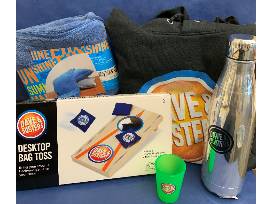 The winner of this basket will take home a $40 Dave & Buster's gift card, a Dave & Buster's sweatshirt (L), desktop bag toss, water bottle, keychain bottle opener, and 2-in-1 travel pillow.