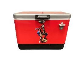 Calling all Captain Morgan lovers! Keep all of your beverages cool with this hard-sided, steel Captain Morgan cooler, complete with a bottle opener on the outside.
