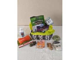 - A basket of snack and toys for dogs from Bentley's Pet Stuff