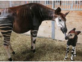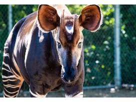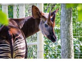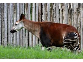 The coloration of the okapi provides a very effective camouflage in its jungle home. The stripes appear to fade into the shadows as it walks through thick brush.