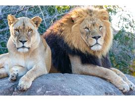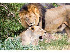 While known as the king of the jungle, the lion lives in sub-Saharan Africa, actually preferring to live in the savannah, scrub and grassy plains. Lions are social animals, living in prides that may have as many as 20 members.