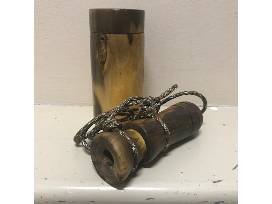 • Lidded Box-Hand turned from Texas Persimmon wood and finished with a sealer and 2 coats of glossy varnish. Perfect for storing, paper clips, rings or other small jewelry items. Approximately 5inches tall by 2 inches wide.