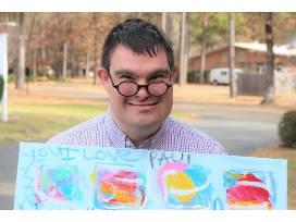 Paul enjoys hanging out with his family and friends. His painting reflects this and many of the other things he loves. Paul likes going on community outings and attending functions at Holy Angels. He enjoys horseback riding, writing, and painting.