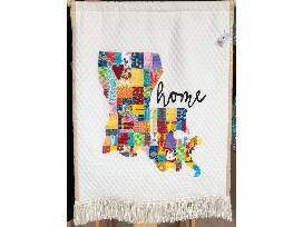 Fabric Banner, Hand Stitched Louisiana, 37" x 30"