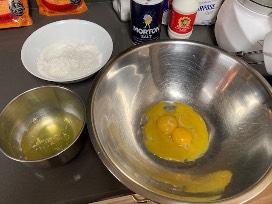 In a large mixing bowl, beat yolks. Stir in flour mixture alternately with milk. Add cheese. Mix well.