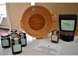 Artist Taylor Cullen learned basket weaving from her mother, Nina Webb, and is proud to carry on the legacy of finely made, hand-crafted baskets. Taylor's baskets are a hybrid of Nantucket and Shaker style basket making. Made on a Nantucket lightship basket mold, Taylor uses a thicker reed to weave, instead of the traditional thin cane. Her baskets are stained with tea and finished with food safe tung oil. Enjoy Taylor's unique twist on an old Nantucket tradition with a basket filled with her famous Nantucket-made treats!