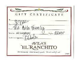 Winning bidder receives an Avila's El Ranchito gift certificate for $50.00. Good for all locations with no expiration date. Get your date night on!