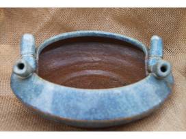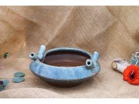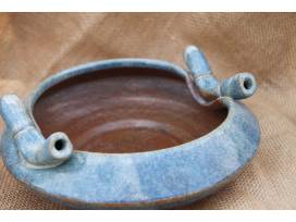 This blue bowl is an original piece created by an HBHS student. It measures 9" in diameter and 3.5" tall.