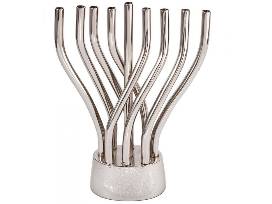Hammered Metal Menorah Twisted 12" with 44 cups of pure solid olive oil Chanukah candles by Shalhevet.