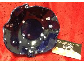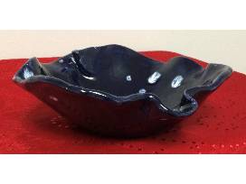 An original handmade clay dish blue with white accents.