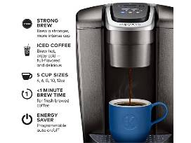 - Keurig K-Elite Coffee Maker, Single Serve K-Cup Pod Coffee Brewer, With Iced Coffee Capability, Brushed Slate