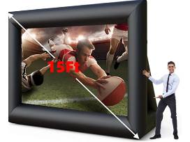 15' INFLATABLE MEGA MOVIE SCREEN - Super large screen size of 120" (W.) and 68" (H.), 16:9 aspect ratio. The Projection Screen is 15ft corner to corner giving over 12.5ft viewing area. GW:22 lbs. This portable projector screen is lightweight enough to take it with you for family entertainment and outdoor movie parties.