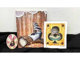 Also comes with Artist Proof Prints of each suited bird and Official Artist Sticker. Nathan is an OG artist starting in 1993. His work expands over three decades. We are privileged to have some of Nathan work from his private stash. His wood prints were a limited print that was sold out.