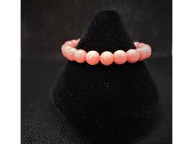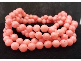48" pink coral necklace and two 8" elastic band matching bracelets.