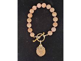 8" Morganite bracelet with gold and silver accents and toggle clasp.