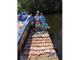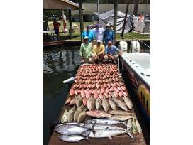 They specialize in catching as many species as possible. In addition to bottom fish, they also target pelagic species such as Dolphin, Wahoo, and Blackfin tuna when possible. The bottom fish they target on the Middle Grounds are Vermillion Snapper, Mangrove Snapper, lane Snapper, Red Snapper, Gag Grouper, Scamp Grouper, Red Grouper, Amberjack, Kingfish, Cobia, and Red Porgies. With such a variety of species to target they have no trouble bringing home a box full of fish on these fantastic trips.