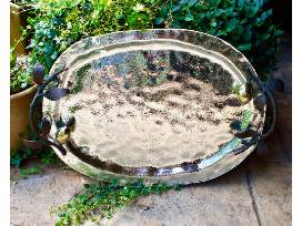 You will love this Michael Aram lemongrass tray in bronze, gold-plate, and glass. Each Aram piece is individually crafted so that no two pieces are alike. 16" x 12 " platter. This piece is stunning!