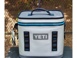 Brought to you by Lake Oconee Ace Hardware, this auction item features a Yeti Hopper Flip 12" Soft Cooler in fog gray and tahoe blue (a discontinued color that is in very high demand).