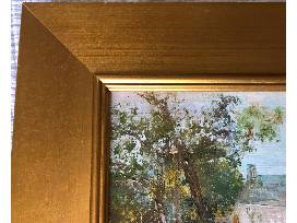 Shaker Village, Ky. oil painting is 8"x 10" in a gold wood frame.