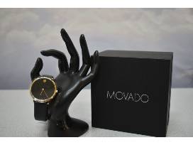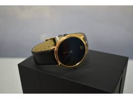 Movado EXLUSIVE Modern 47, 40mm Yellow Gold PVVD-Finished stainless steel case with black-toned dial on black leather band.