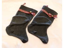 2 Charcoal Lab shaped Christmas Stockings