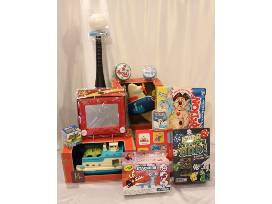 2 Spot It Games, Operation, Even Steven's Odd!, Etch a Sketch, Beaker Creatures, Fat Bat & Ball, Melting Snowman, Crayola Model Magic Stackers, Julius Matching Game, Happy Crusers Boat and plane.