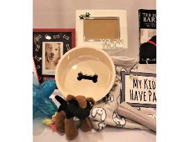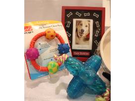 Woof Picture Frame (4x6), Best Buddies Picture Frame (4x6), late, The book of Barkley, My kids have paws plaque, ceramic water & food bowl, Hard Chew Bone, Subaru Dog Toy, Dog Towel, large dog chew toy, Petstages multi texture chew ring, Soft Spots Barking Dog