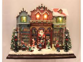 Battery operated Village Toy Store that lights up and plays Christmas Music. 13" H