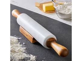 MARBLE ROLLING PIN & HOLDER SET - Roll out dough then store your pin safely with the Marble Rolling Pin & Holder Set. The weight of this beautiful rolling pin does the work for you, and the smooth surface keeps dough cool and prevents it from sticking to the barrel. The holder keeps your pin safe on the countertop or in a cabinet.