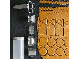 ROLLING COOKIE CUTTER (storage container not included) -Make big batches of cookies, pasta, pastries, and pie lattice in a fraction of the time with the Rolling Cookie Cutter Set! The specially designed handle keeps pressure in the right place so your treats are uniformly cut and bake evenly.